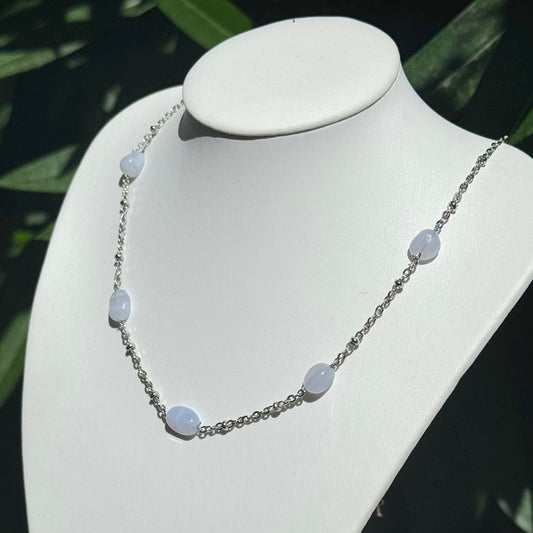 Collier Lumiliberté calcédoine bleue
