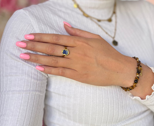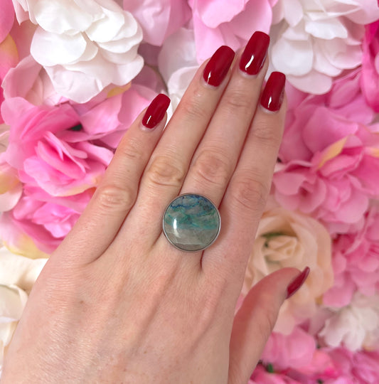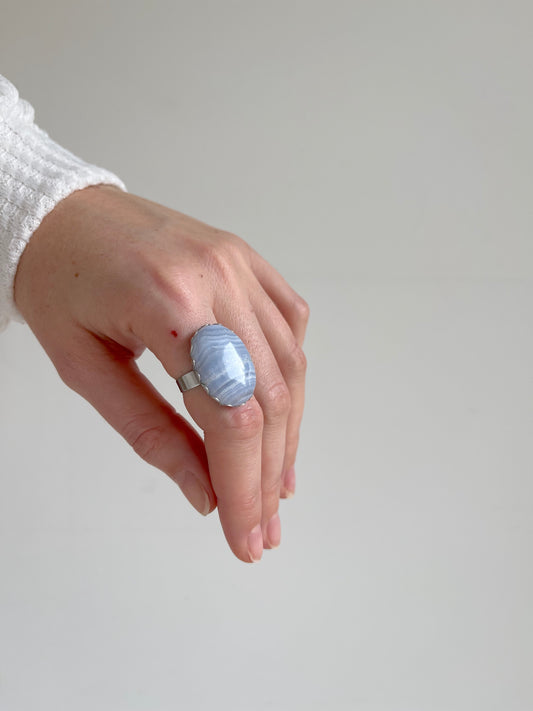 Victime de son succèsBague Lumiéclat agate dentelle bleue
