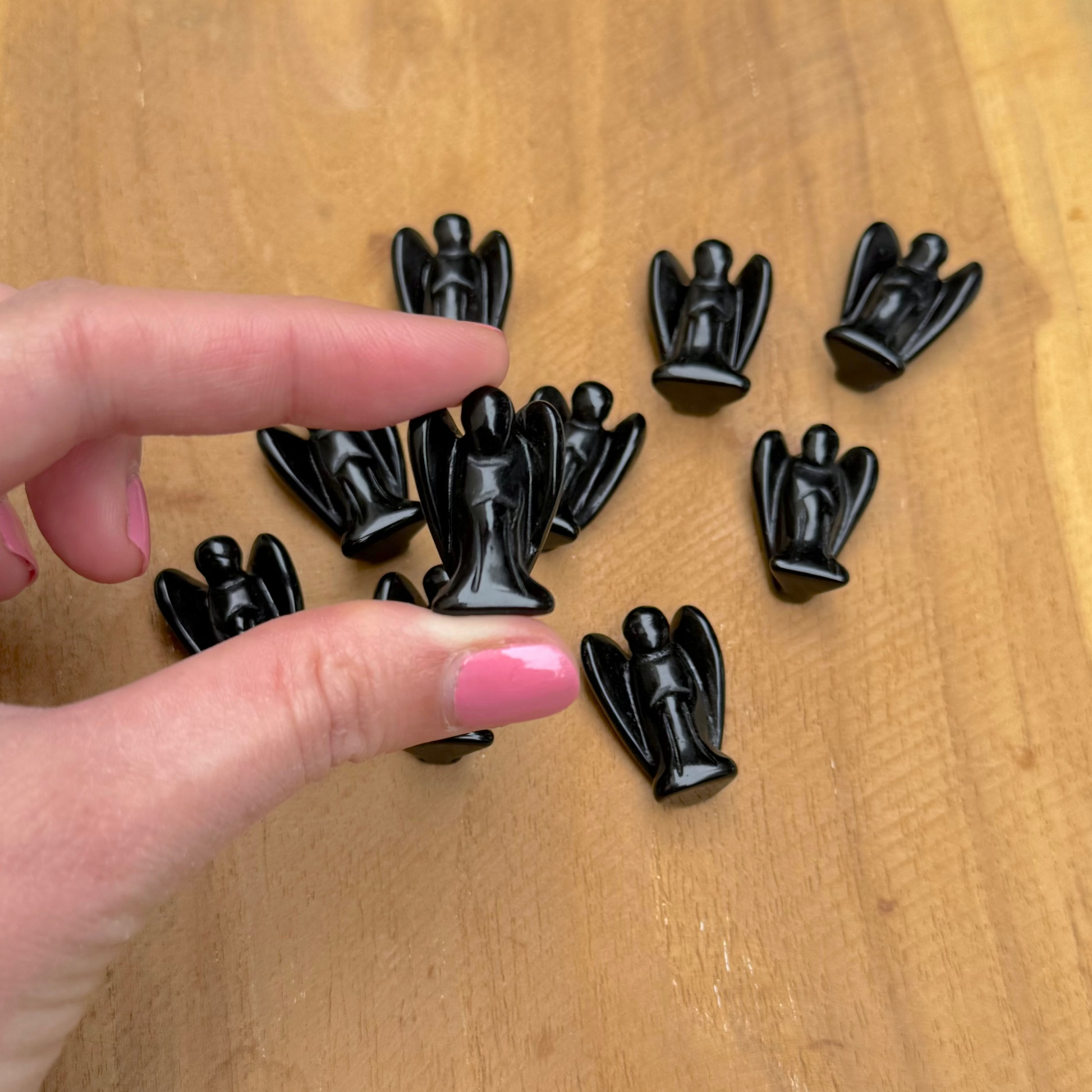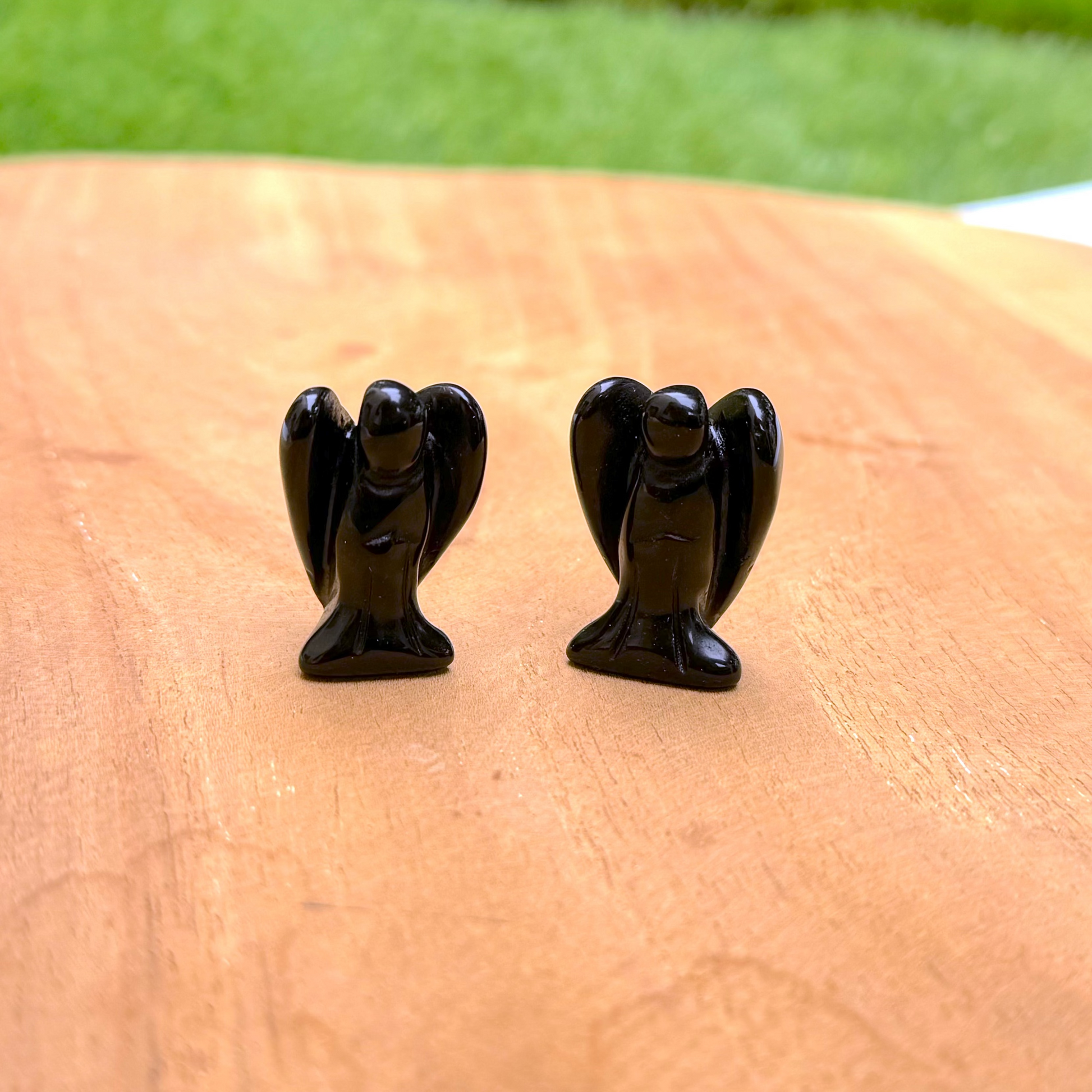 Ange en pierres naturelles d'obsidienne noire en forme d'ange