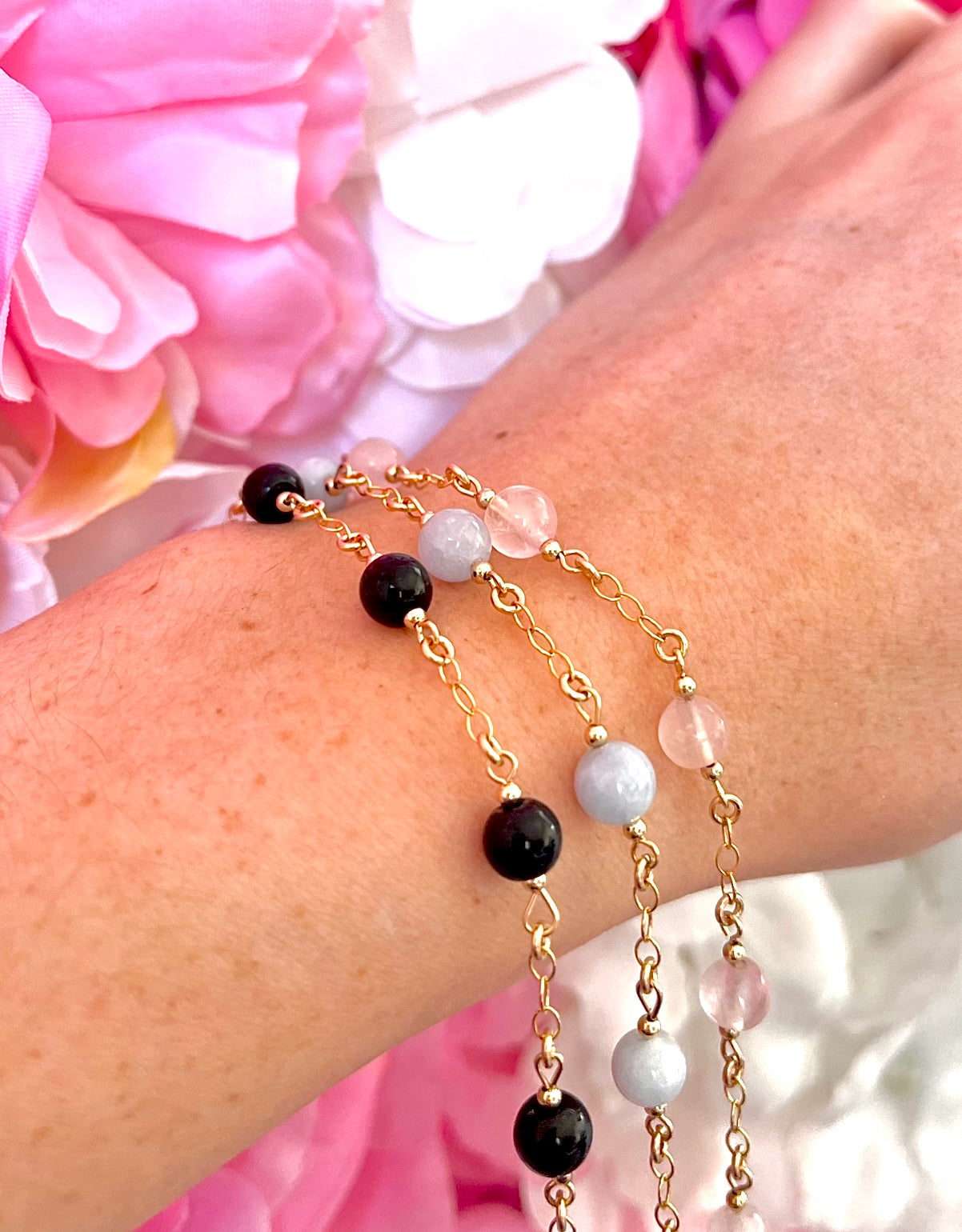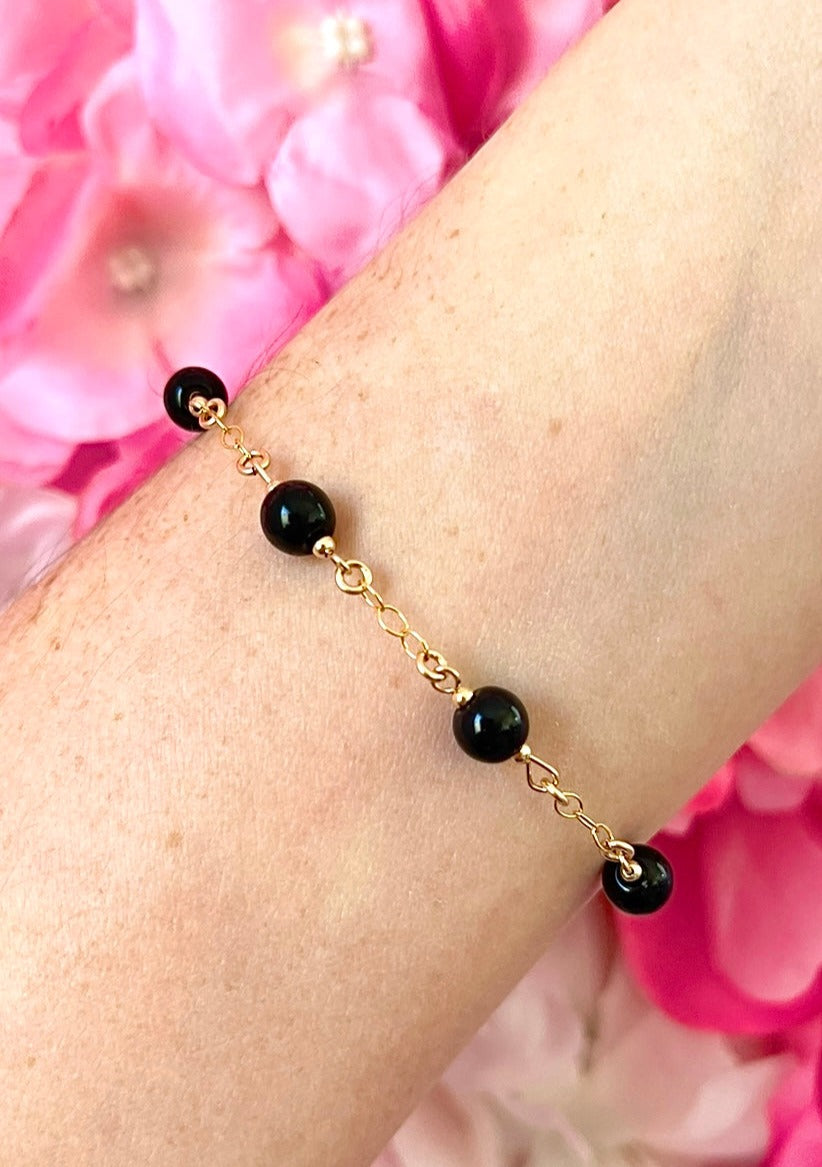 Bracelet rempli d'or 14k ou gold filled accompagné d'Onyx.