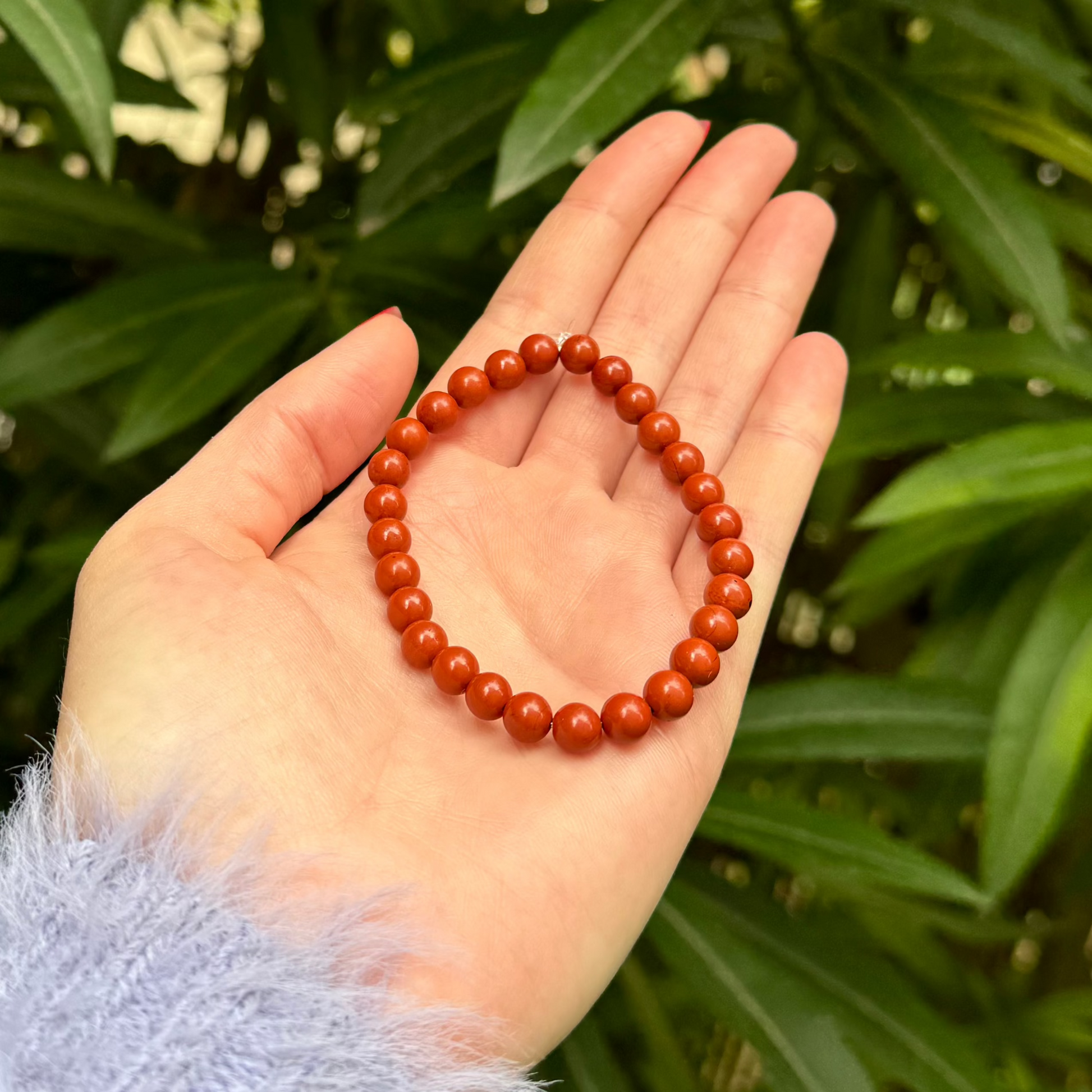 Bracelet élastique en perles de jaspe rouge 6mm.