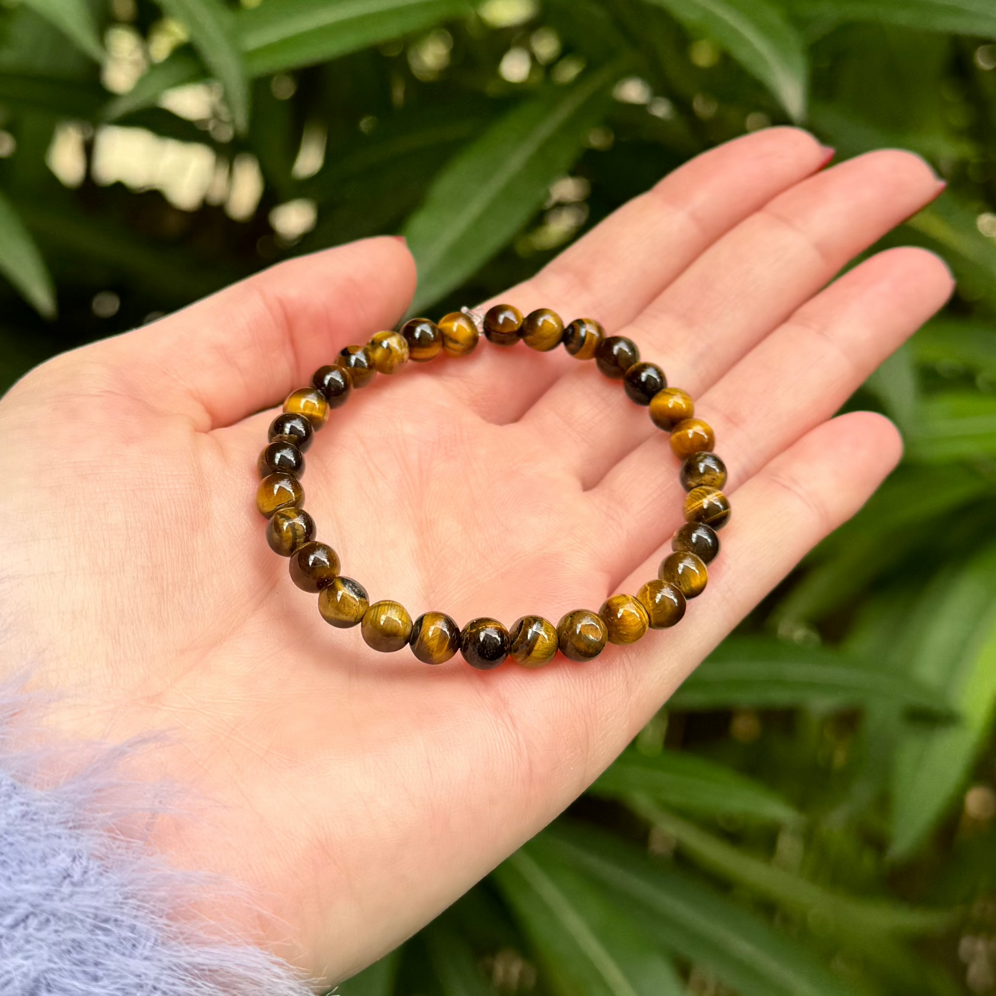 Bracelet élastique en perles d'oeil de tigre 6mm.