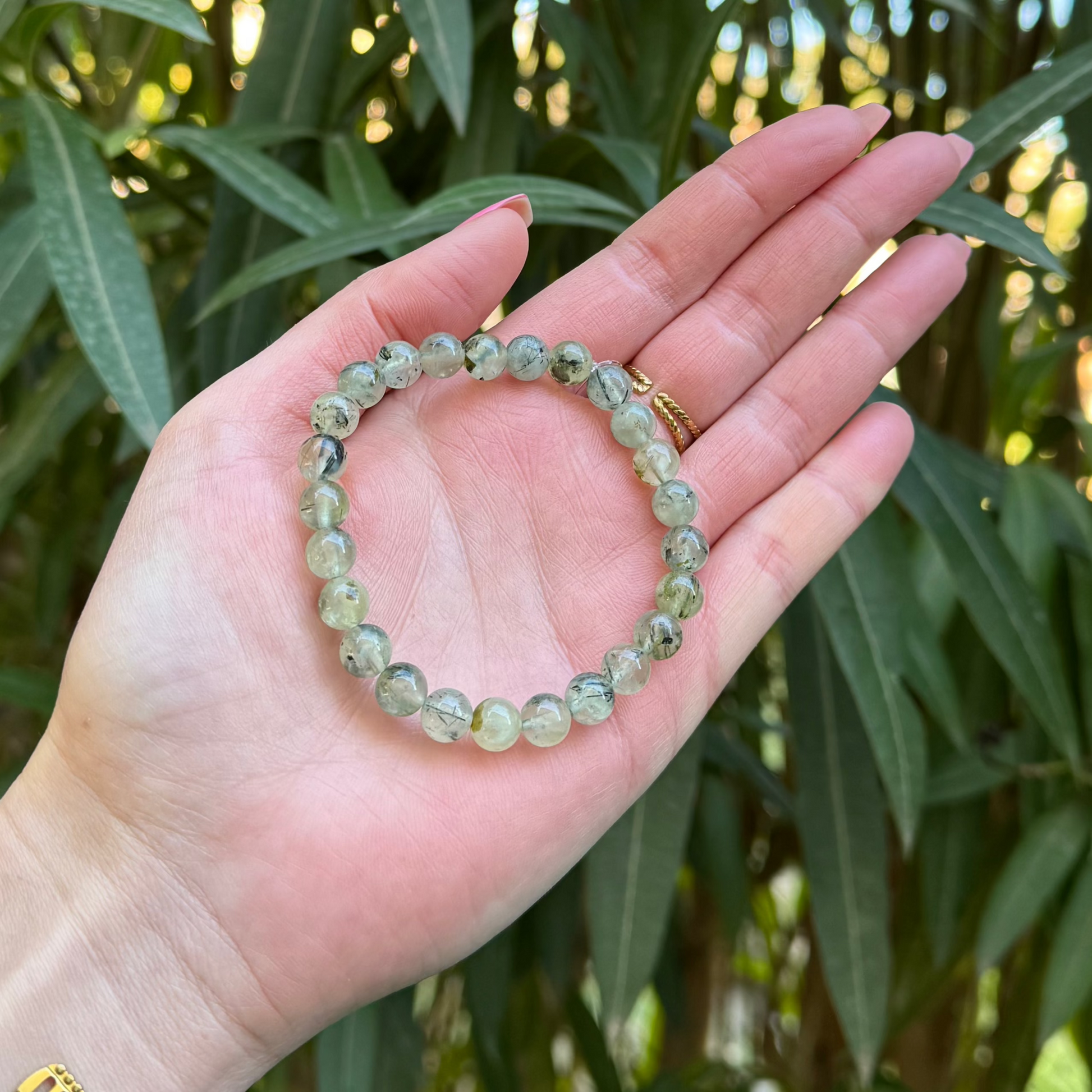 Bracelet élastique en perles de préhnite 6mm ou 8mm