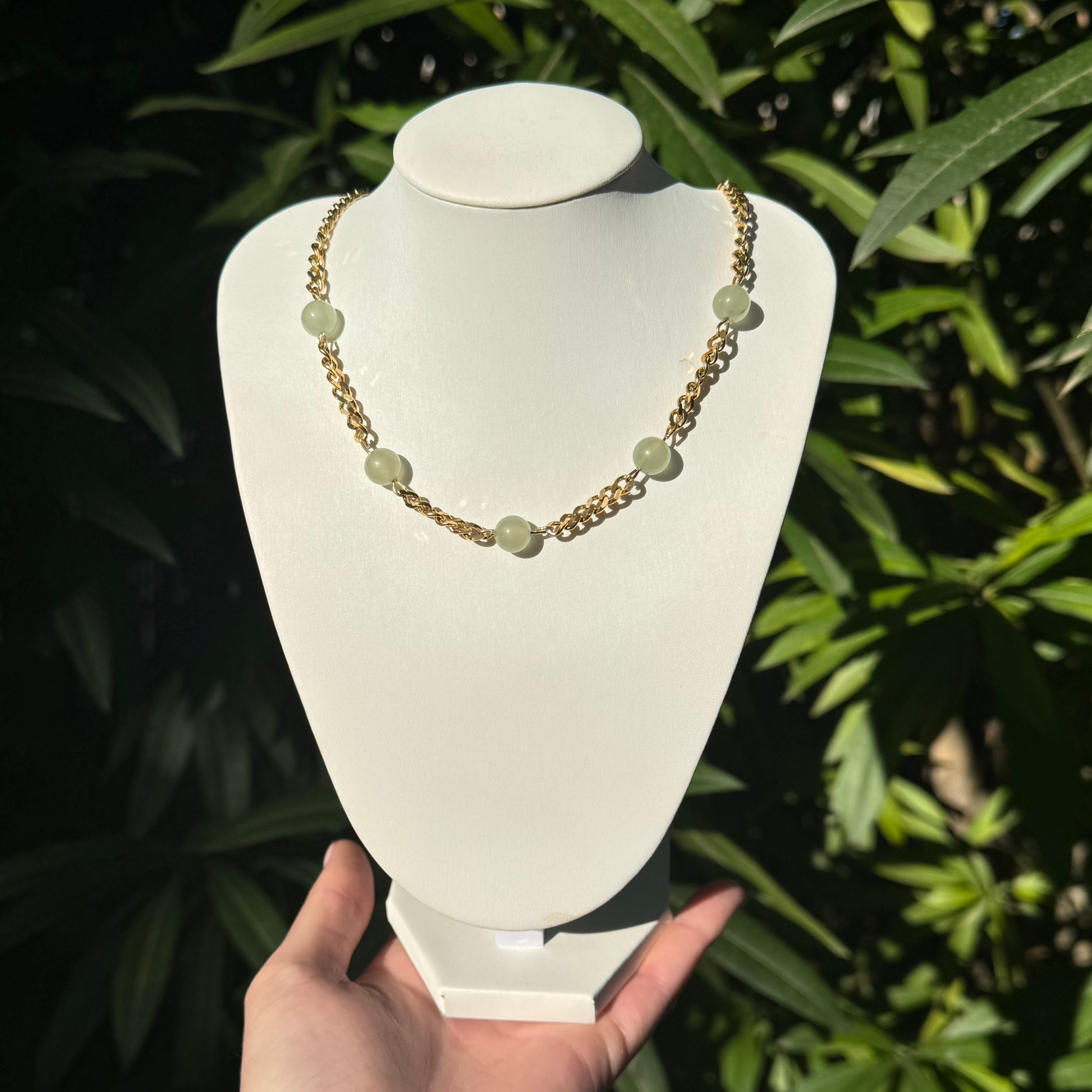 Collier en acier inoxydable fait main accompagné de 5 perles d'aventurine verte en 8mm.