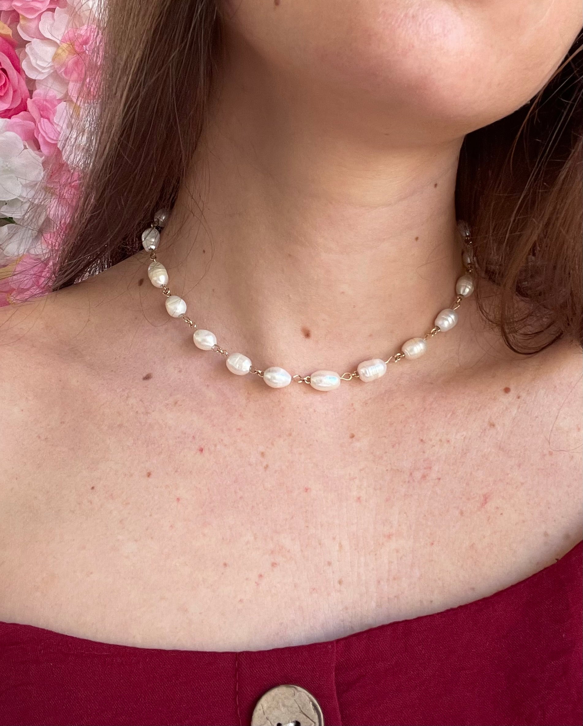Collier rempli d'or 14k ou gold filled accompagné de perles d'eau douce.