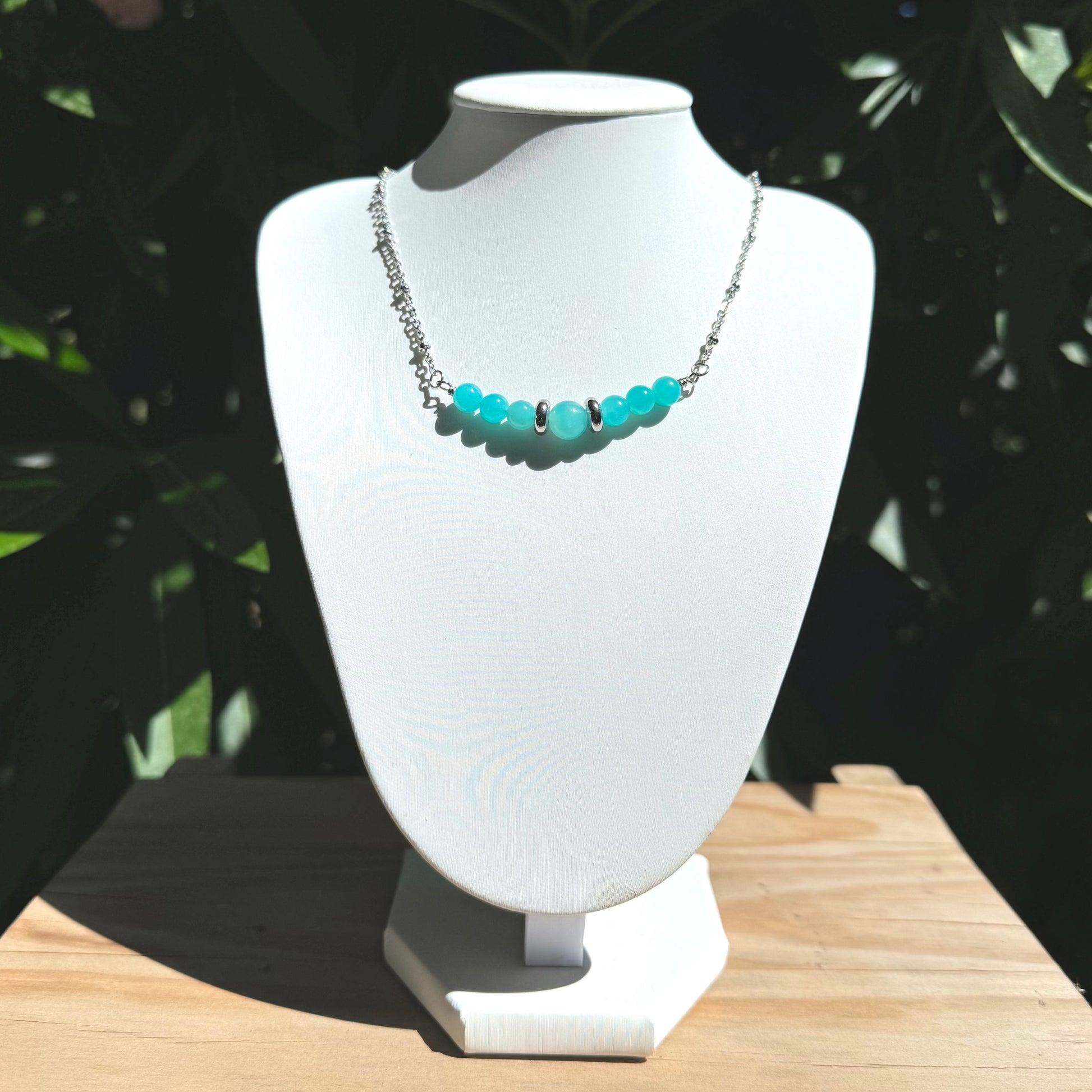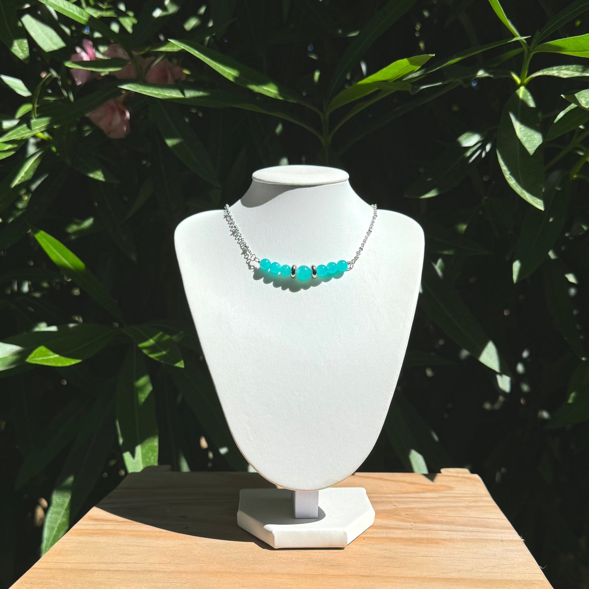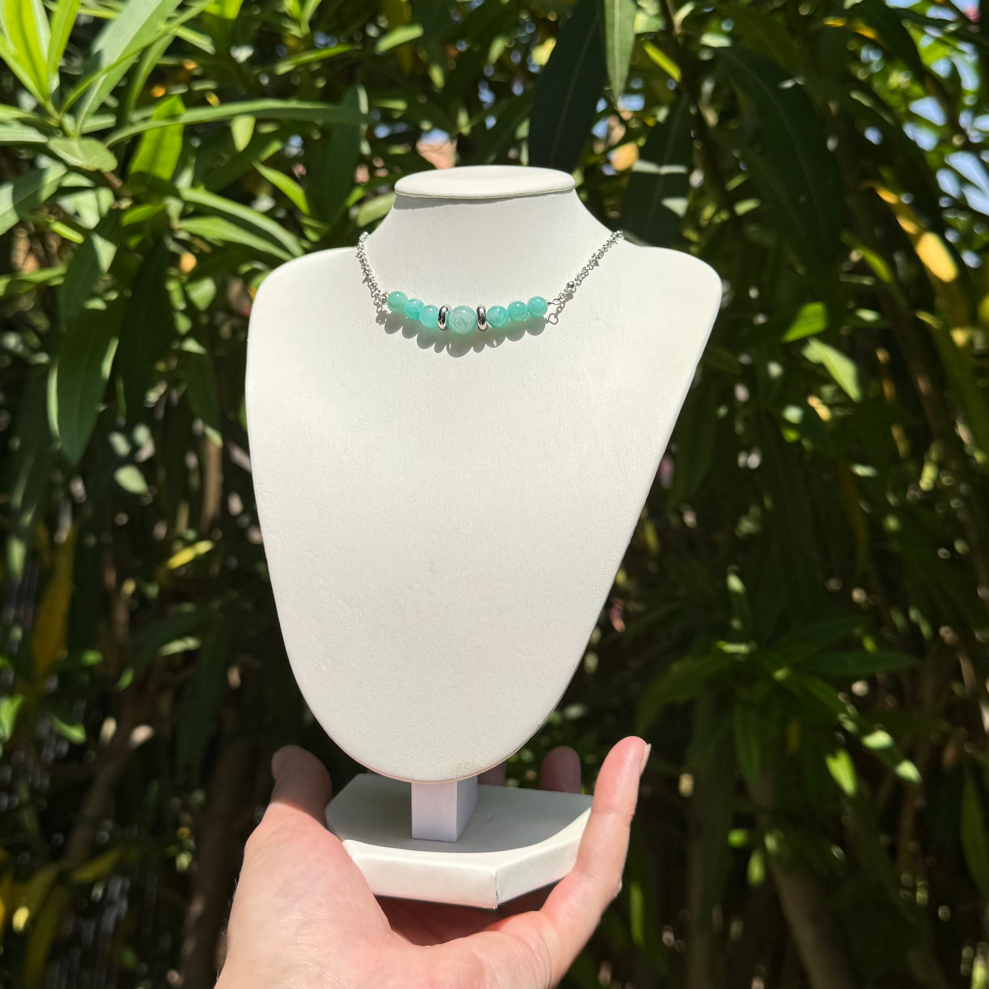 Collier en acier inoxydable fait main accompagné de perle d'amazonite en 6 et 8mm.