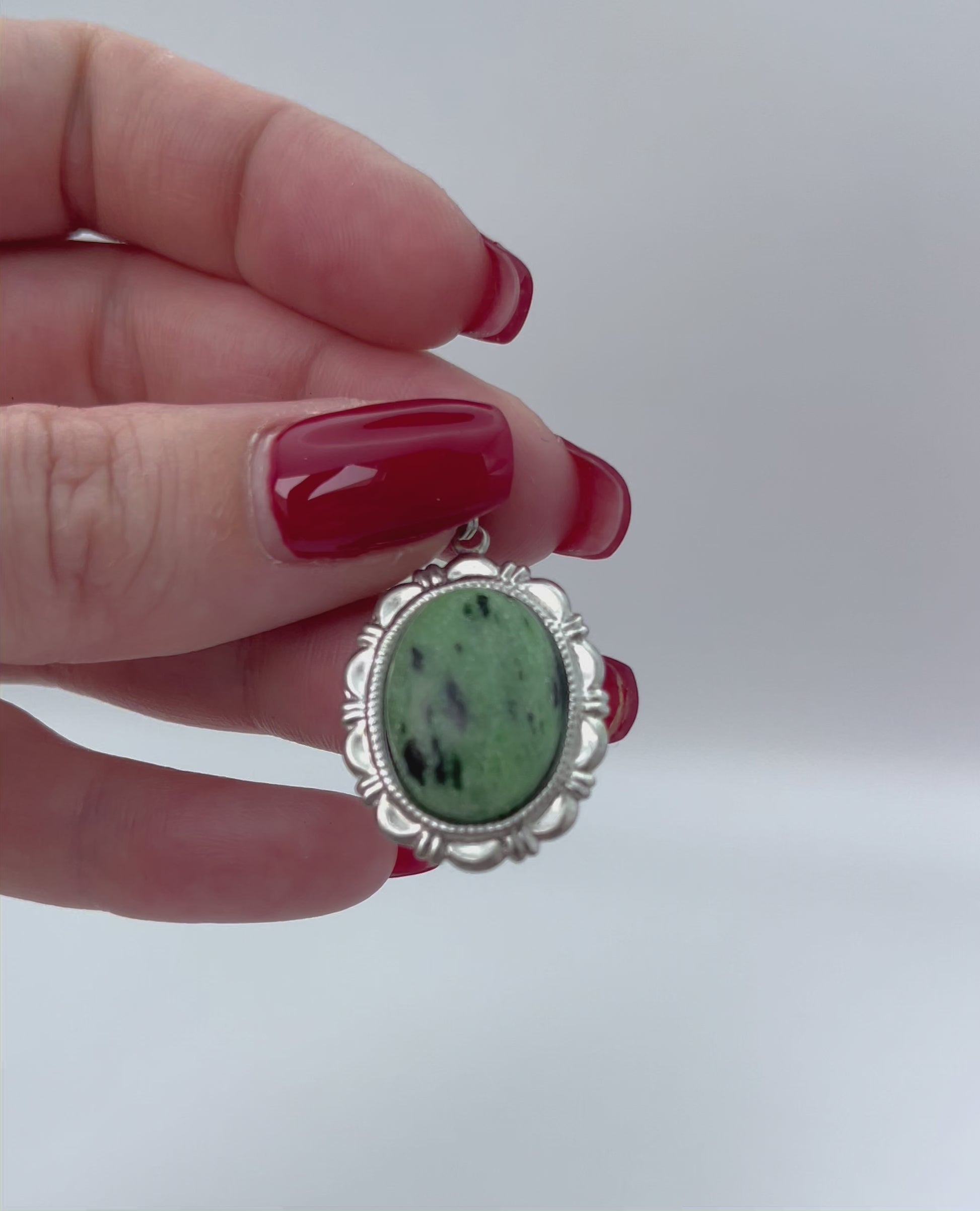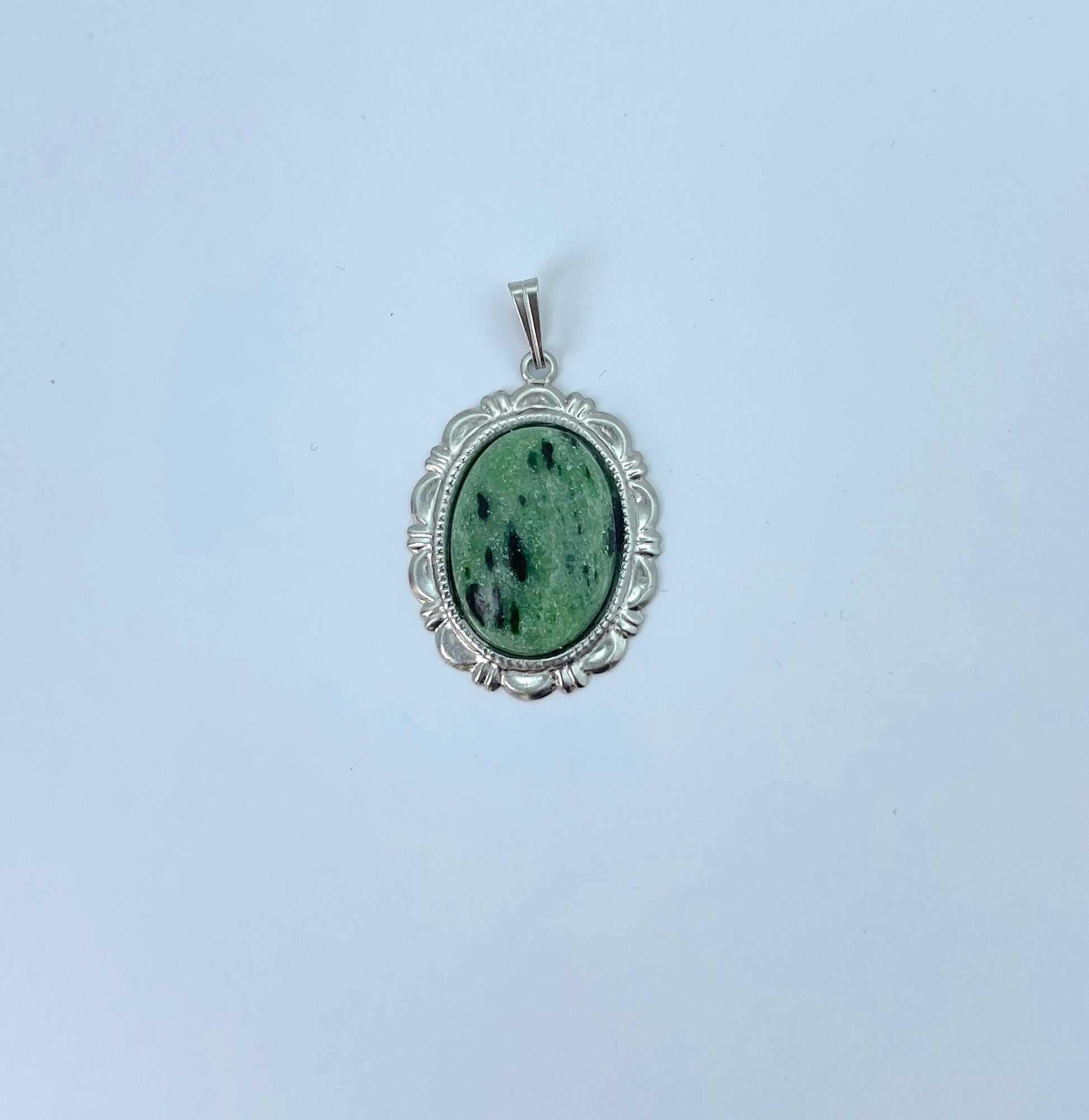 Pendentif en acier inoxydable doré accompagné de Zoïsite.